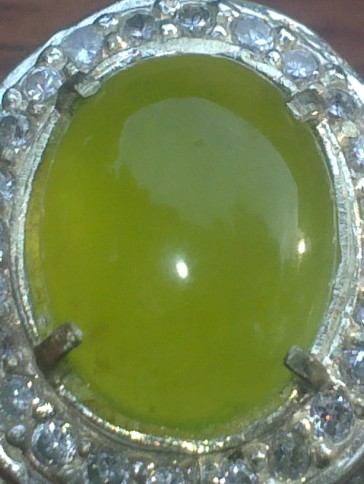 This is a Natural Sungai Dare, or usually called as Sumatran Jade, set on an 20mm glittering alpaka ring. According to my supplier, this Sungai Dare is not from Sumatra, but the inclusion is similar with the Sumatran origin. The size of this gems is (est) 14,8mm x 11,2mm x 5mm.